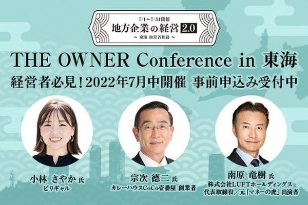 『THE OWNER(https://the-owner.jp/)』は2022年7月、経営者向けオンライン・カンファレンス「地方企業の経営2.0 ~THE OWNER Conference in 東海~」を開催致します。