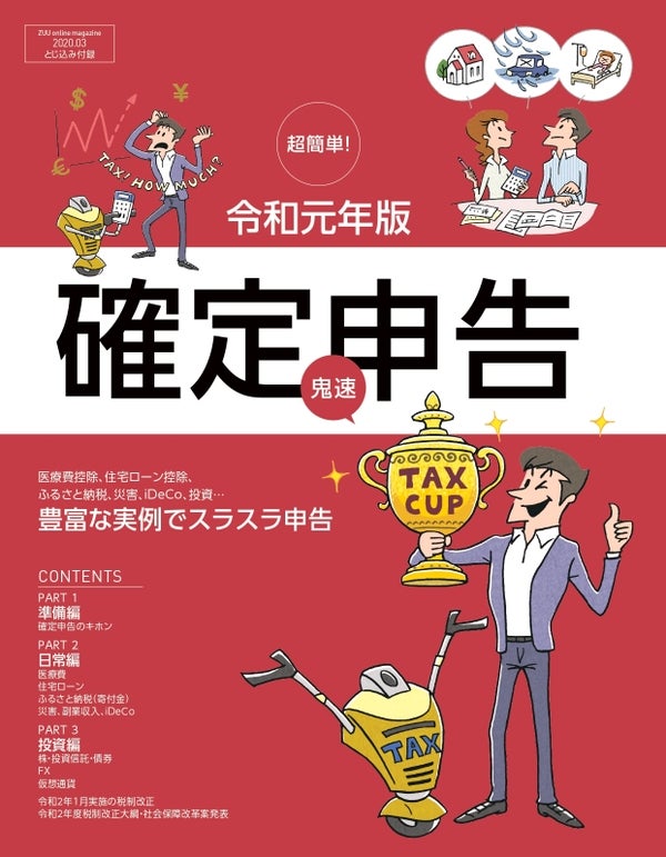 確定申告の季節がやってきました。今年の確定申告の申告期間は2月17日から3月16日まで。特に昨年は地震や台風などの自然災害も多かったため、対象となる人は例年より多くなりそうです。定番の医療費控除や住宅ローン控除、ふるさと納税や副業の申告、そのほか株やFX、iDeCo といった投資の申告などを記入例を添えて丁寧に解説していきます。ハードルが高いと思われがちな確定申告書を“鬼速”で作成できるはず。とじ込み付録として48ページを使った総力特集です。
