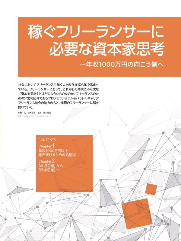 社会においてフリーランスで働く人々の存在感が年々高まっ ています。フリーランサーにとって、これからの時代に不可欠な 「資本家思考」とはどのようなものなのでしょうか。フリーランスのための非営利団体であるプロフェッショナル&パラレルキャリア フリーランス協会の協力のもと、実際に年収1000万円以上を稼いでいるフリーランサーに話をうかがいました。