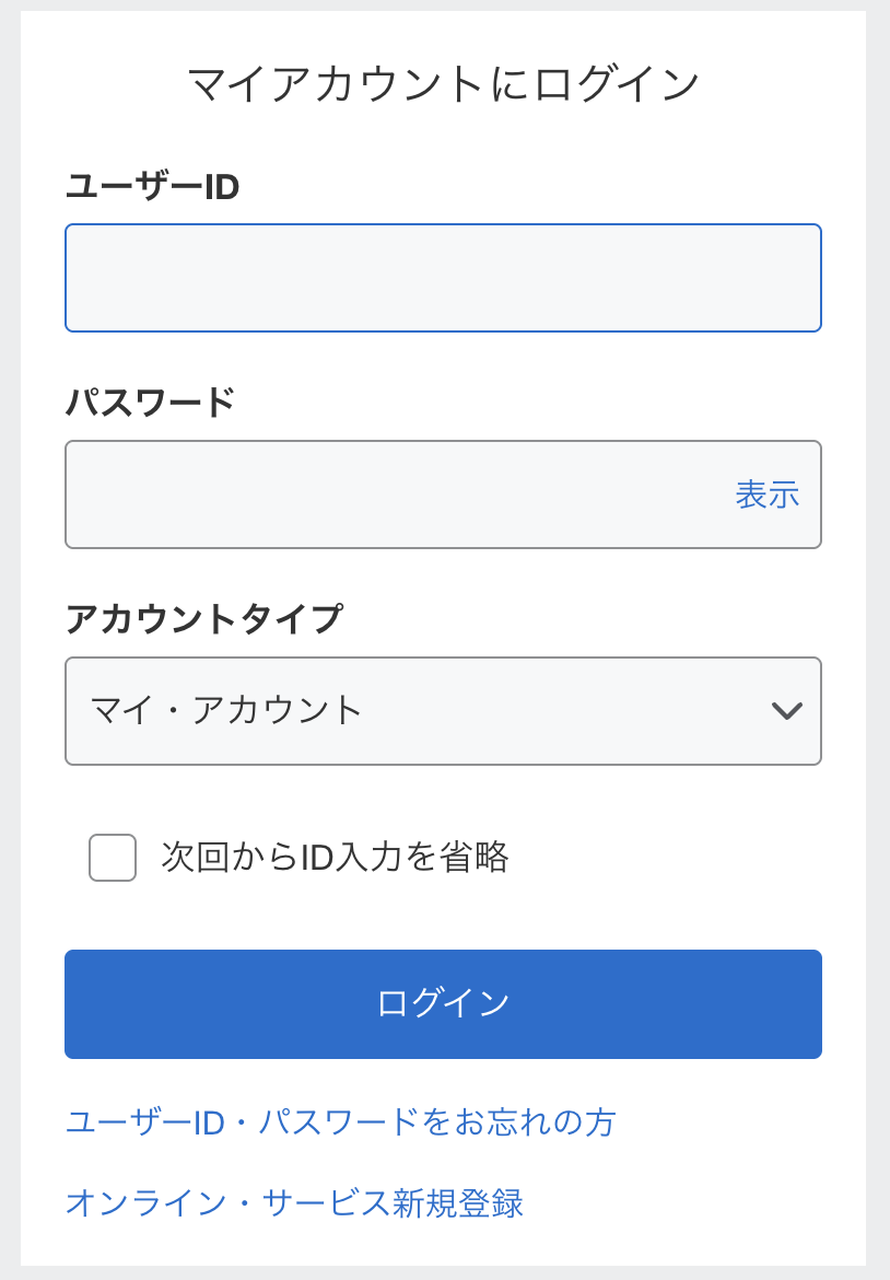 ユーザーIDやパスワードといった、ログインに必要な情報が間違っている場合には、マイアカウントを利用できません。