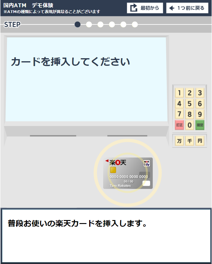 初めてキャッシングを利用する人のために、楽天カードでは公式サイト上でキャッシングのデモ体験が可能です。コンビニATM、銀行ATMそれぞれのシーンにおける利用方法を体験できるため、コンビニでのキャッシング方法も事前に確認できます。