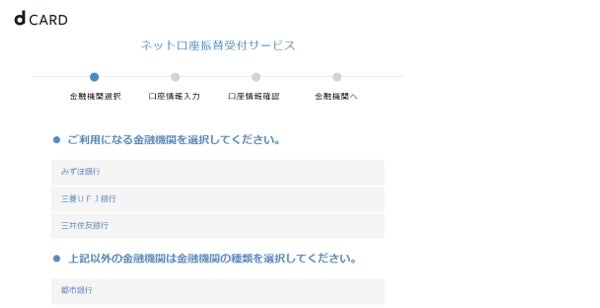 ここで、利用料金の支払い先に設定する口座を入力してください。入力完了後に、dカード申し込みが完了します。