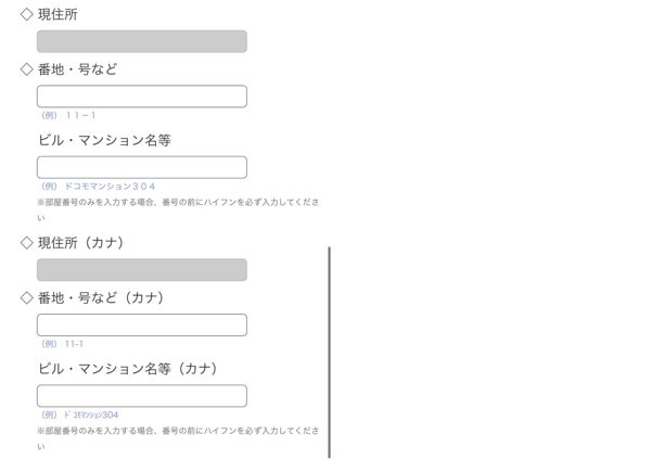 続いて、氏名や住所など個人情報を入力していきます。ここで入力内容を誤って申し込んでしまうと、本人確認が取れず審査に通らない可能性があるので、入力内容はしっかりと確認しておきましょう。