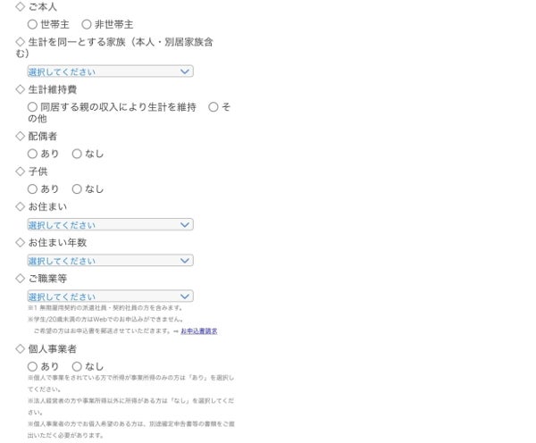 続いては職業や年収、他社での借り入れ状況など経済面に関する項目を回答します。