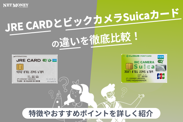 そこで今回は、JRE CARDカードとビックカメラSuicaカードを徹底比較し、ポイント還元率、旅行傷害保険、ショッピング特典の違いを説明します。また、それぞれどんな人におすすめかも解説しているので、カード選びの参考にしてください。