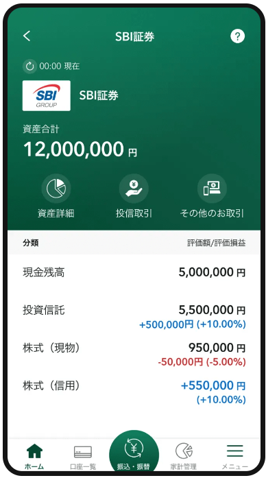 たとえば、給与振込口座とクレジットカード、電子マネー決済を同じアプリ内で可視化できるので、月々の支出や預金残高をひと目で把握できます。