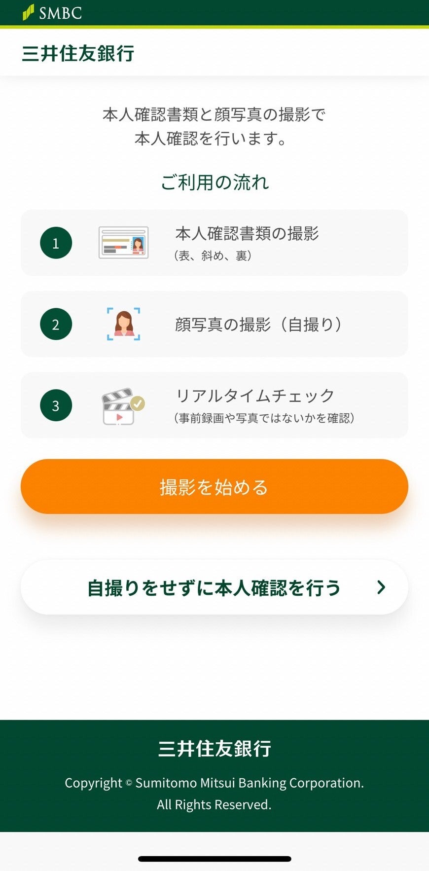 まずは三井住友銀行アプリをインストールし、「Oliveアカウントを申し込む」をタップして必要情報を入力しながら手続きを進めます。この段階でSMBC IDの登録も行います。