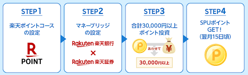 また、月3万円以上を積み立てて一定の条件を達成すると、楽天市場でのポイント還元率が0.5%上がる特典(SPU)もあります。これは、つみたてNISAの積立投資も対象です。