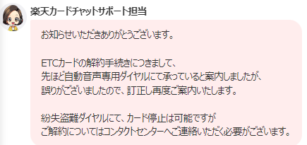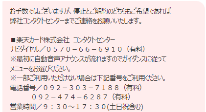 楽天ETCカードの解約方法は自動音声の電話のみ