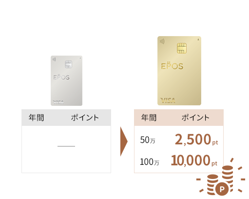 また、エポスカードを頻繁に利用してインビテーションを受けられるゴールドカードは年間利用額に応じてボーナスポイントを獲得できます。