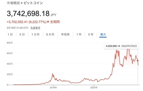 2021年11月に過去最高値となる1ビットコイン=777万円を記録しました。