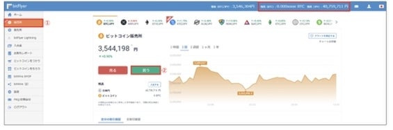 1.「販売所」を開き、右上の残高があることを確認し、問題なければ「買う」を選択