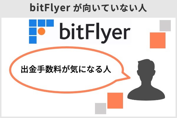 bitFlyer(ビットフライヤー)が向いていない人は出金手数料が気になる人だ。出金手数料は220円~770円と幅があるが、最高手数料は他社に比べると高めになっている。