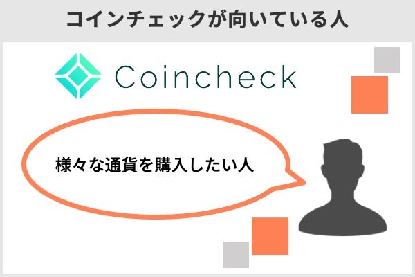 コインチェックが向いている人はいろいろな通貨の購入を考えている人だ。取扱い通貨数は35種類で、マイナーなアルトコインまで揃っているので上級者も満足できるだろう。