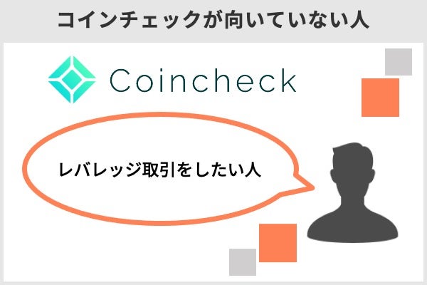 コインチェックが向いていない人はレバレッジ取引をしたい人だ。コインチェックでは現在、レバレッジ取引に対応していないため、現物取引のみとなっている。