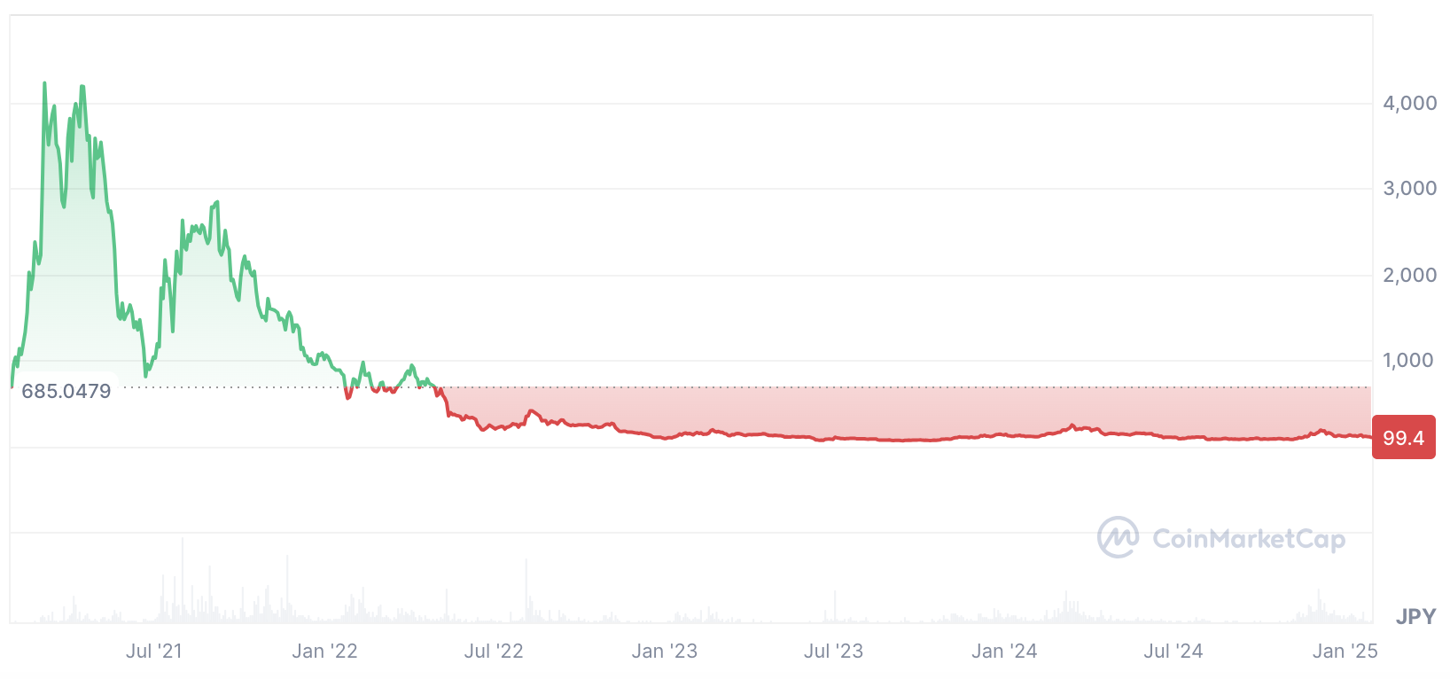 2021年1月に上場した際、価格は861円でした。そこから急上昇し、2021年4月5日には4,291円の最高値に達します。この上昇にはNFTへの関心が世界中から集まったことと、開発元であるDapperLabsへの期待感が大きかったと考えられています。