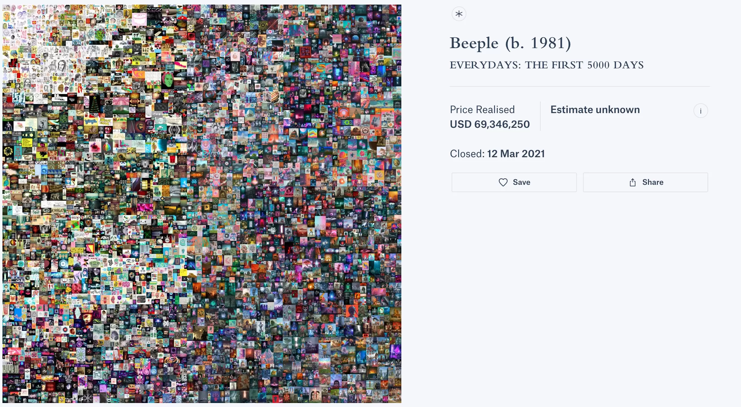NFTはデジタルアートを中心に広がりを見せ、デジタルアーティストBeeple(ビープル)の「The First 5000 Days」が米老舗オークションハウスのクリスティーズで6900万ドル(約76億円)で落札されるなど、高額取引が注目を浴びるようになりました。
