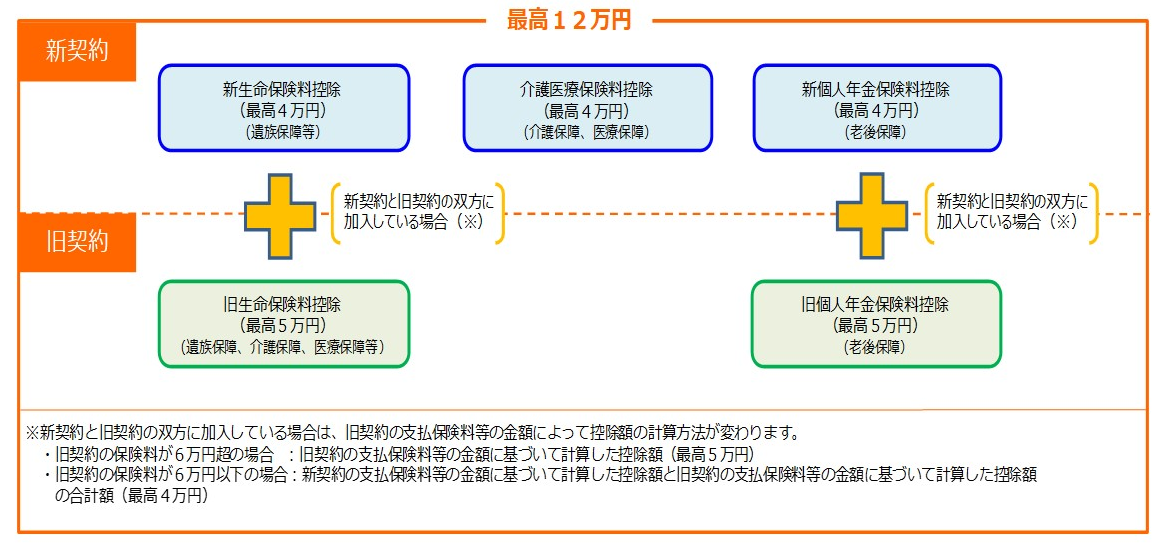 ※定額個人年金保険は、一定の条件を満たすと「新個人年金保険料控除」の対象となりますが、変額型個人年金保険は、上図の「新生命保険料控除」(一般の生命保険料控除)の対象になります。複数の保険に加入する場合は、各保険料がどの保険料控除の対象になるかを確認してください。