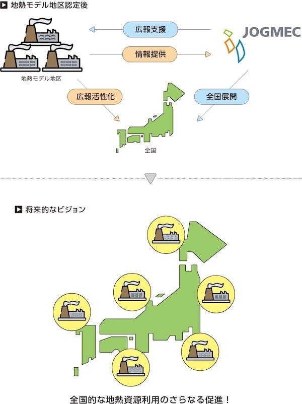 地熱モデル地区プロジェクトは、モデル地区からJOGMEC へ情報提供いただき、JOGMEC はモデル地区の広報支援、そして全国展開するというスキームでスタートしました。2019年に始まってこれまでは、情報提供と広報支援に力を入れてきましたが、今後全国展開のところに力を入れたいと思っています。