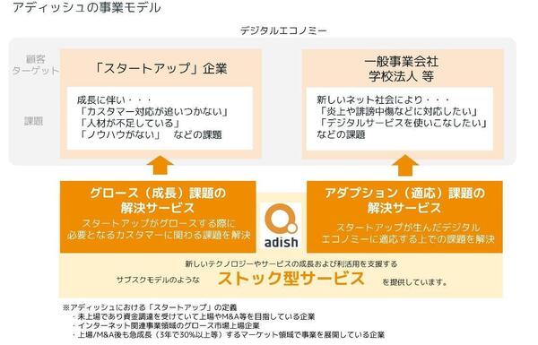 アディッシュ株式会社は、カスタマーサクセスによるスタートアップ企業の成長支援をする事業と、企業向け誹謗中傷・炎上対策、学校法人向けネットいじめ対策サービスなどを提供している企業だ。さまざまな企業の成長をカスタマーサクセスで支援するトップパートナーを目指している。今回は、代表取締役である江戸浩樹氏にアディッシュ株式会社の強みや今後の展望について話をうかがった。