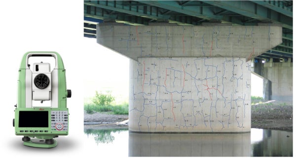 ▼建物:橋梁などのひびわれや破損状況を計測する「KUMONOS」