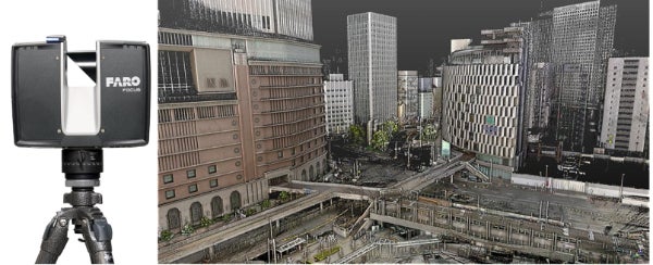 この技術に取り組むことになったきっかけは、1998年に日本に初めて持ち込まれた3Dレーザースキャナーの軽量化の依頼でした。当時、原子力発電所向けに開発されていたこの機械は実に40㎏もありましたが、軽量モデルの開発に携わり、2000年には16㎏の「GS100」の開発に成功しました。現在では、さらに高精度かつ軽量の4㎏の3Dレーザースキャナーが市場に出ており、これらを駆使して国内外のインフラなど様々な対象のデジタル化を進めています。