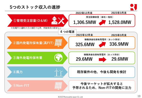 眞邉:弊社の成長に関しては「稼ぐ力」を見ていただきたいです。要は、EBITDA(金利支払い前、税金支払い前、有形固定資産の減価償却費および無形固定資産の償却費控除前の利益)です。EBITDAの成長のドライバーは、「O&M」「高FIT」「海外」「風力」「Non-FIT」といった5つの柱があります。