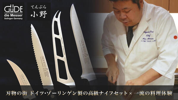 - プロジェクト名 「てんぷら小野」が監修するドイツ・ゾーリンゲン製高級ナイフと一流料理体験