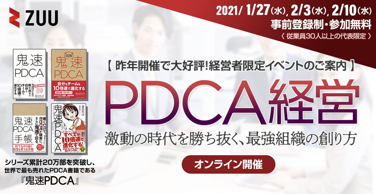 弊社はこれまで、代表・冨田の著書で累計20万部を突破した書籍『鬼速PDCA』実践のための勉強会やセミナーを経営者向けに開催して参りました。累計約5,000名以上の経営者の方々にご参加いただいており、毎回大変な好評をいただいております。多くのメディアでも書籍『鬼速PDCA』は取り上げられており、経営者の間で大きな反響を生んでいます。今回、弊社では、新型コロナウイルスの感染拡大など変化の激しい時代に、『鬼速PDCA』の手法を用いて利益・売上を成長させ続けるための経営術をお伝えする、経営者限定イベントの開催を決定致しました。