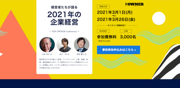 名称:「経営者たちが語る『2021年の企業経営』~THE OWNER Conference~」