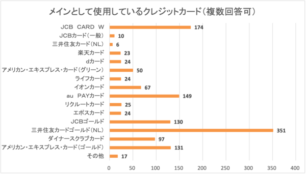 メインカードとして、三井住友カードゴールド(NL)やJCB CARD Wを利用している方が多いようです。