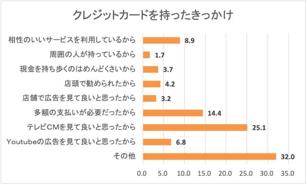 テレビやCMを見て、クレジットカードを持つきっかけにした方が多いようです。