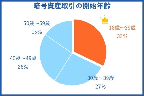 暗号資産の取引を始める年齢として、18歳~29歳が32%と最も多い結果になりました。