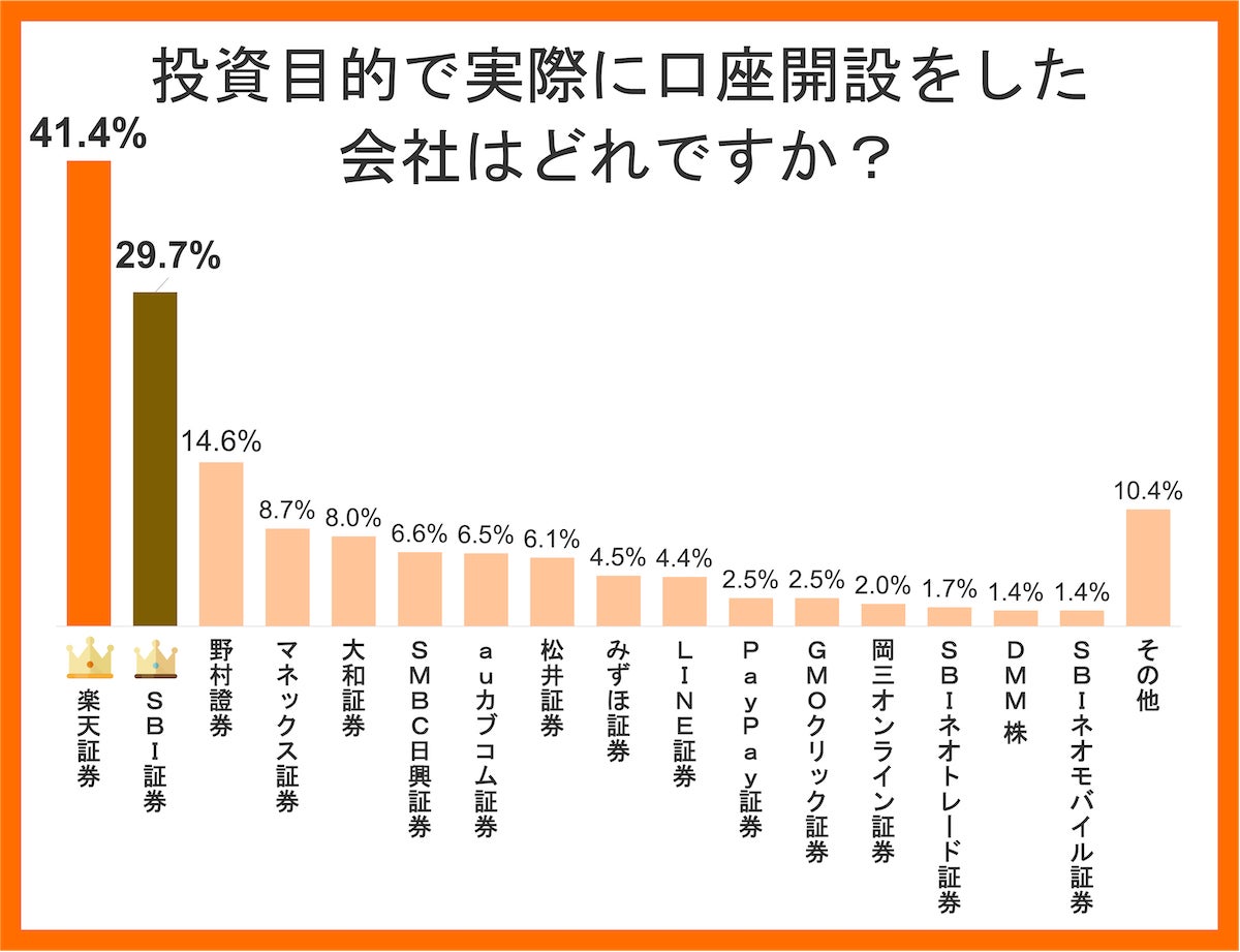 実際に口座開設をした会社は楽天証券が最も多く、414人が口座開設をしました。