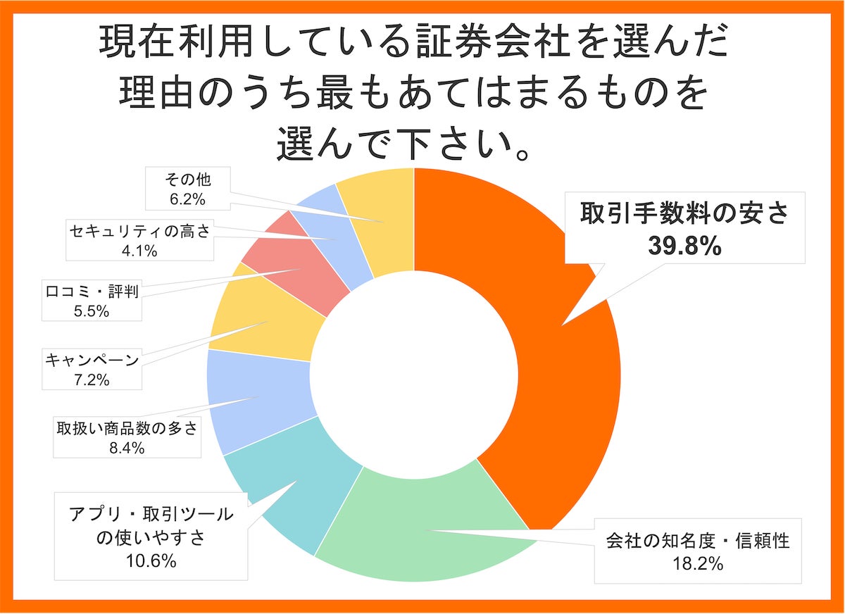 「取引手数料の安さ」が最も多く、2番目に多いのは「会社の知名度・信頼性」でした。