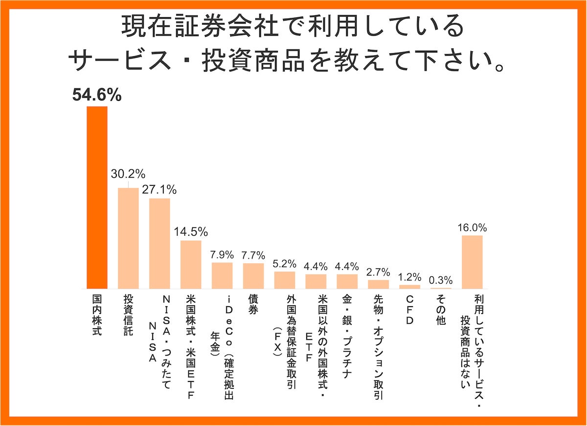 【質問6】現在証券会社で利用しているサービス・投資商品を教えて下さい。