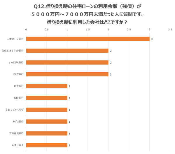 Q12.借り換え時の住宅ローンの利用金額(残債)が5000万円~7000万円未満だった人に質問です。借り換え時に利用した会社はどこですか?