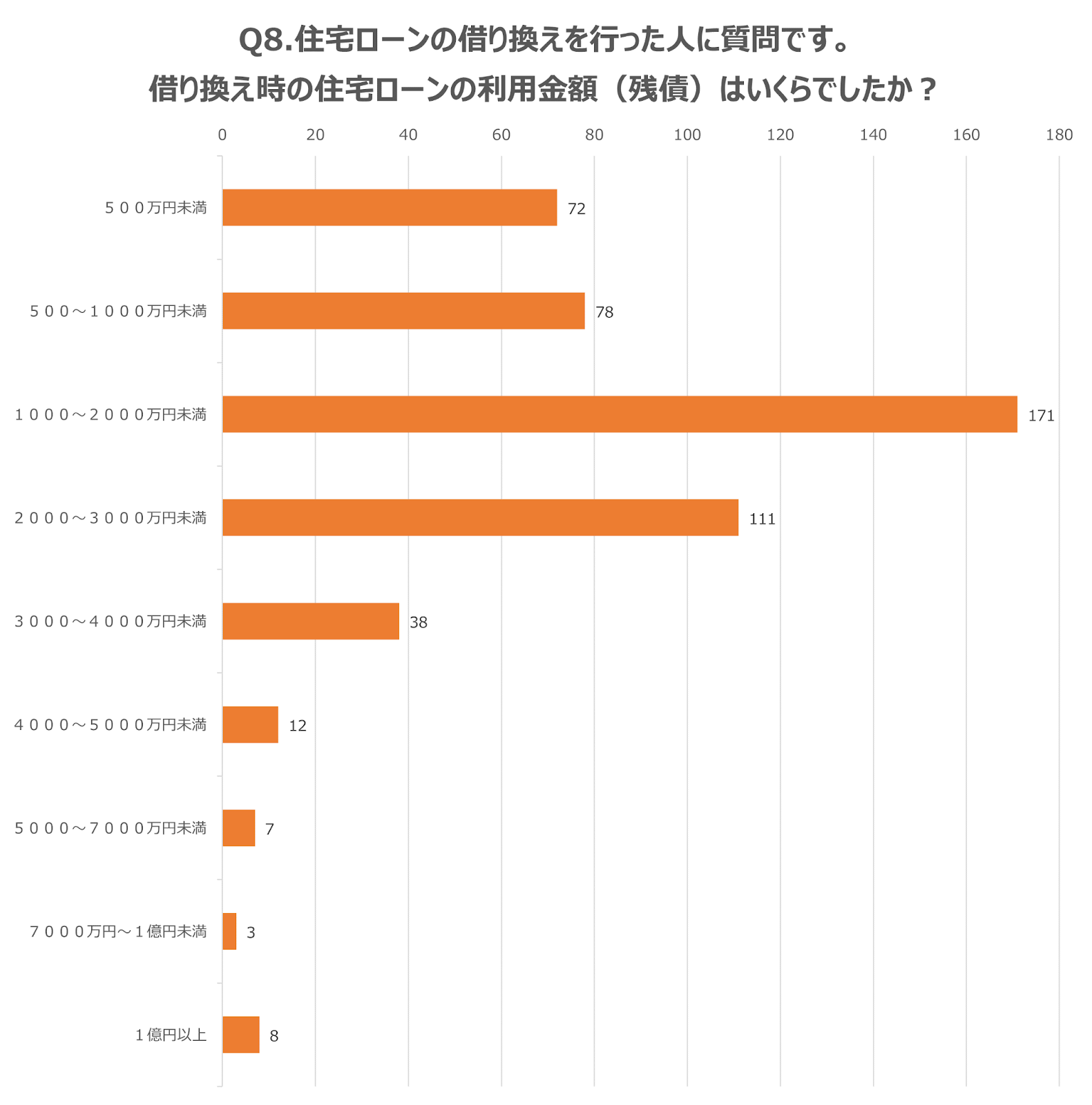 Q8.住宅ローンの借り換えを行った人に質問です。借り換え時の住宅ローンの利用金額(残債)はいくらでしたか?