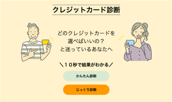 さまざまな種類のクレジットカードが登場する一方で、利用者目線に立つと、「それを使いこなせる自信がない」もしくは「機能やサービスに関して詳しくわからない」などという課題もありこの度の新機能では、自分のライフスタイルや重視するポイントなどに基づいて、ランキング形式で自分にぴったりなクレジットカードを診断することが可能です。
