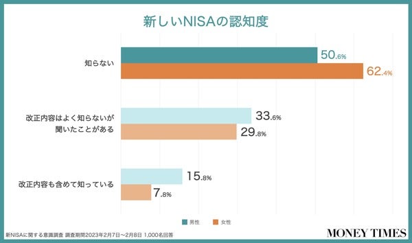 男女共に50%以上が2024年にNISAの制度改正が行われることを「知らない」と回答