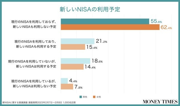 男女共に60%以上が新しいNISAを「利用しない予定」と回答