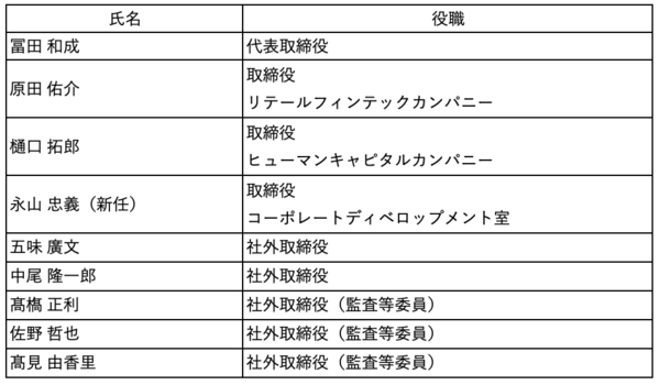永山忠義氏は、グループ価値向上に向けた出資、M&A、IR、広報といった全社機能を主管するとともに、事業カンパニーが推進する他社との戦略的アライアンス事業についても間接的に管掌するなど、事業成長にもかかわってまいりました。今までの業務執行で培われた同氏の事業面における知見や豊富な経験、高い経営能力は、当社グループの今後の発展のために必要不可欠であると判断し、取締役として選任致しました。