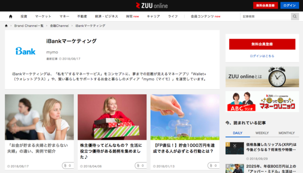 (ZUU online 「Brand Channel(ブランドチャンネル)」 for iBankマーケティング )