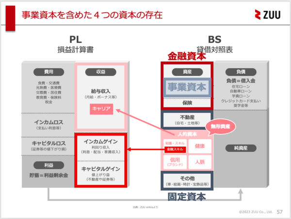 前半では、当社代表取締役の著書『資本主義ハック』でも触れられている、4つの資本(人的資本、金融資本、固定資本、事業資本)を解説し、世の中で一般的にお金持ちと呼ばれる人たちは、事業資本(自分のビジネス=自社株)を持っていることが多いこと、4つの資本を高めるには投資が必要であり、その元手を稼ぐ必要があることを解説。収入を増やすには給与収入以外にも投資での収入があることをお伝えしました。