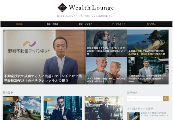 今回「Wealth Lounge(ウェルスラウンジ)」の共同運営を通じて、富裕層の関心のある「相続・不動産」「経済・ビジネス」「ライフスタイル」のテーマの他、野村の仲介+(PLUS) *1と連動したオリジナルインタビューコンテンツの提供を通じて、新たな不動産取引に役立つ情報を提供していきます。