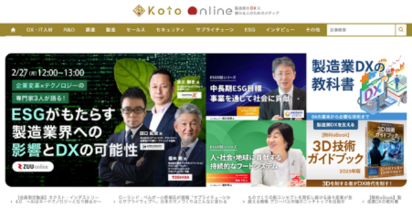 これらの課題を解決すべく、『Koto Online』は自社のノウハウや事例を広く発信するだけでなく、さまざまな製造業の取り組み事例やその成果、業界の専門家インタビューなどのコンテンツも配信し、日本の製造業が進むべき未来を明らかにしていきます。
