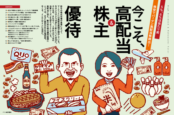 足元の金融マーケットではさまざまな懸念材料が台頭し、外国為替市場では円高が定着、株式市場ではボラタイル(変動率の高い)な動きに加え、値動きの重い展開が続いています。一方で、全体相場の値下がりによって5%や6%といった高配当銘柄が続出中。大手銀行の普通預金の金利が0.001%ですので、あらためて株式投資による配当利回りの高さが注目されます。特集では、高配当に加え、魅力的な株主優待に注目。不透明なマーケットの中でも着実に利益を追求できるインカムゲインについてご紹介します。マーケットが落ち着けば、インカムゲインとキャピタルゲイン(値上がり益)のダブルメリットが狙えます!