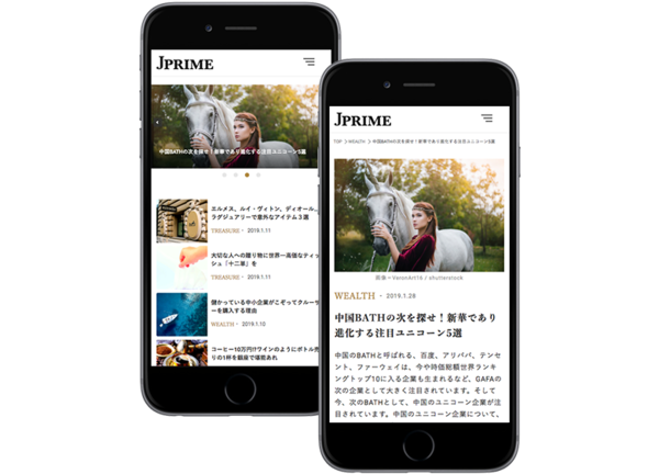 「J PRIME(ジェイ プライム)」は、都市部に住むニューリッチと呼ばれる新世代の富裕層をターゲットにし、新たな時代を牽引する人々がどのように資産を運用し、ライフスタイルを確立し、健康にも留意しながら、価値を創出していくのかについて提案するコンテンツを展開していきます。