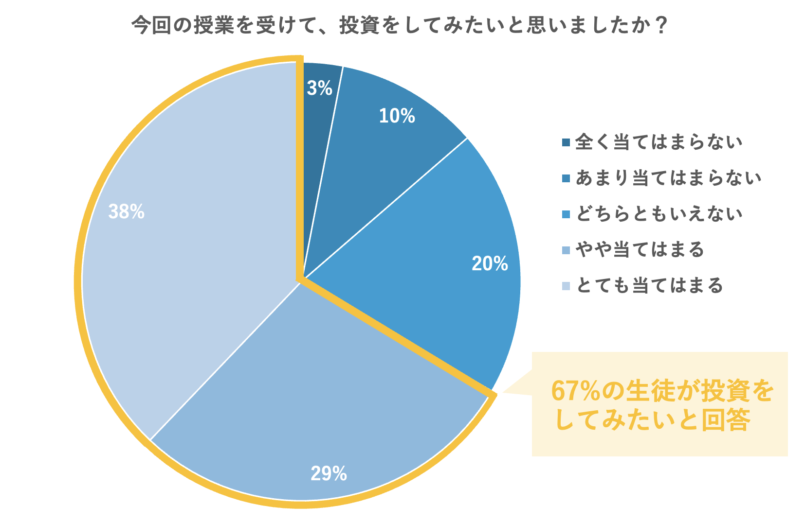 ・授業後67%の生徒が今後投資をやってみたいと投資に対して前向きな考え