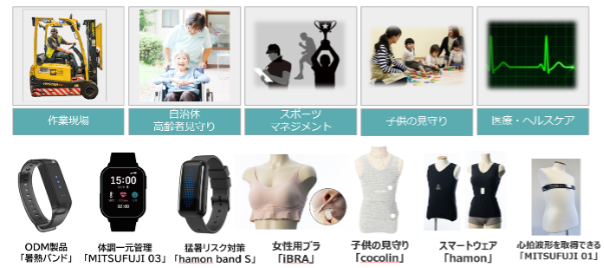 本ファンドの投資先であるミツフジ株式会社は、1956年に京都で西陣織帯工場として創業した歴史ある企業です。長年にわたり培ってきた繊維技術を礎に、銀めっき導電性繊維『AGposs®』の導電性・抗菌防臭性・電磁波シールド性を活用した製品開発、ならびに熱中症対策・健康管理・見守りなどが可能なウェアラブルデバイスの製品開発とサービスを提供し、様々な社会課題の解決に貢献しています。